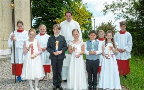 In der Kuratie Wildenwart empfingen nun 13 Kinder das Sakrament der heiligen Eucharistie. Musikalisch wurden die Kommunionskinder von den „RimstTeenies“ begleitet, die mit ihrem Gesang die Kirche erfüllten. In seiner Predigt ging Pfarrvikar Gottfried Grengel darauf ein, warum Jesus Brot und Wein für