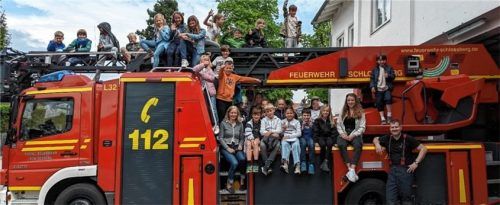 Was mache ich, wenn es brennt? Welche Gefahren entstehen? Wie schützen sich Feuerwehrmänner? Einen ganzen Fragenkatalog hatten sich die Schülerinnen und Schüler der 3a überlegt und vorab auch Briefe an die Feuerwehr Schloßberg geschrieben. Beim Besuch im Feuerwehrhaus beantwortete Jugendwart Christi