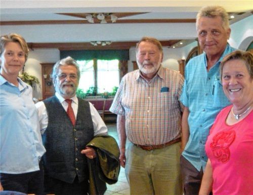 Diese Bürgermeister waren bei den Festlichkeiten zur „200-Jahr-Feier der evangelischen Karolinenkirche“ in Großkarolinenfeld zu Gast. Auf dem Foto sind zu sehen: (von links) die Bürgermeisterin von Westheim/Pfalz, Susanne Grabau, der ehemalige Bürgermeister von Großkarolinenfeld, Günter Schramm, der