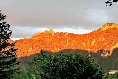 Manchmal scheinen die Alpen in der untergehenden Sonne regelrecht zu glühen. So wie die mächtige Kampenwand auf diesem Schnappschuss, aufgenommen von unserem Leser-Reporter Klaus Piwernetz aus Aschau.Foto Piwernetz