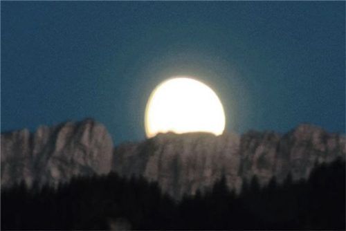 Auch wenn der Mond viermal kleiner als die Erde ist, so hat er dennoch einen großen Einfluss auf das Leben. Der Abstand zwischen ihm und der Erde beträgt zwischen 363300 und 405500 Kilometer. Leser-Reporter Ludwig Resch aus Oberaudorf hat den fast vollen Erdtrabanten abgelichtet.Foto Resch