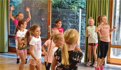 22 Kinder ab sechs Jahren kamen zum Ferienprogramm-Kurs „Tanzen wie die Gardemädchen“, den die Faschingsgilde Prutting veranstaltete. Im örtlichen Pfarrheim brachten vier Mädchen der Faschingsgilde den Kindern die Grundzüge eines Auftritts bei. Foto Niessen