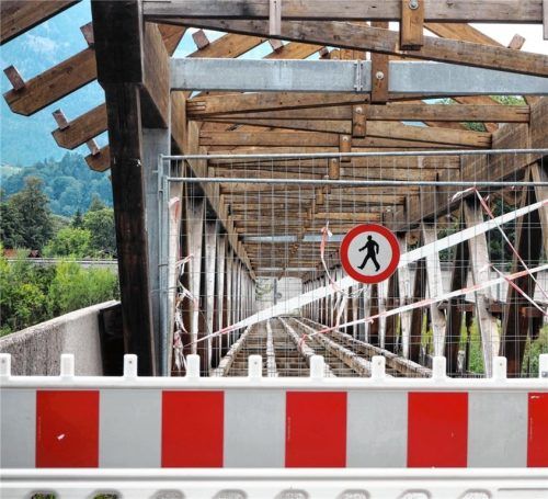 Radfahrer zwischen Erl und Oberaudorf müssen derzeit Umwege in Kauf nehmen. Die Zollhausbrücke (Innsteg/Reisachbrücke) ist seit 19. Juli gesperrt – voraussichtlich noch ein paar Wochen. Grund sind Schäden durch Schädlinge und Fäulnis. Foto Aerzbäck