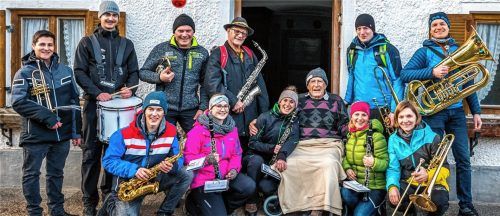 Einige Mitglieder der Musikkapelle Samerberg überraschten den ältesten Mitbürger der Gemeinde Samerberg, Xaver Stadler, zum Neujahr. Die Musikanten machten Station vor dem Haus des Ehrendirigenten in Grainbach. Xaver Stadler, der seit 72 Jahren aktiv und fördernd mit der Musikkapelle verbunden ist,