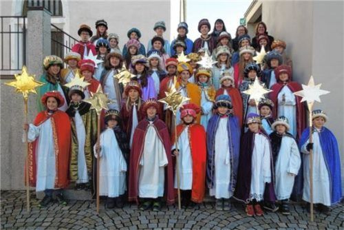 Nach dem Gottesdienst in der Pfarrkirche Hochstätt segnete und entsandte Pfarrer Drago Curic die stattliche Zahl von 43 Sternsingern, königlich eingekleidet von Rita Winkler. Begleitet von Christine Dietrich, Tina Heinzel und Maria Posch, überbrachten sie den Hochstättern ihre Segenswünsche. Das die