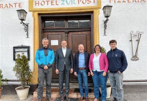 Zu Besuch in der Gemeinde (von links): MdL Christian Zwanziger, Aschaus Bürgermeister Frank Simon, Stellvertreter Michael Andrelang, MdL Claudia Köhler und Valentin Weigel, Grüne-Vorstandsmitglied im Kreisverband Rosenheim.
