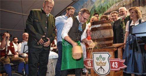 1460 Tage sind vergangen, ehe Raublings Bürgermeister Olaf Kalsperger im Festzelt den Bierschlegel wieder schwingen und das erste Fass Festbier anzapfen konnte. Die Corona-Pandemie hatte lange dirigiert, nun sollen es wi