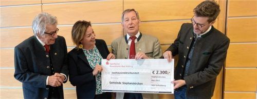Erstmalig hat der Männergesangverein Schloßberg bei einem Sängerball Spenden für bedürftige Bürger der Gemeinde Stephanskirchen gesammelt. Die Sammlung erbrachte eine erkleckliche Summe, die vom Ballorchester und dem Männergesangverein auf 2300 Euro aufgerundet wurde. Auf dem Bild: (von links) Der V