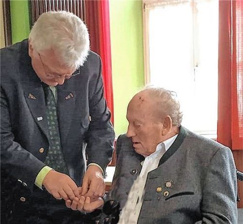 Für 40 Jahre Vorstandstätigkeit im Veteranen- und Reservistenverein Riedering-Neukirchen erhielt Franz Schwarz (rechts) jüngst das Ehrenzeichen am Band von Pius Graf, Obmann der Interessengemeinschaft der Krieger-, Veteranenvereine und Soldatenkameradschaften im Landkreis Rosenheim. Zwölf Jahre davo