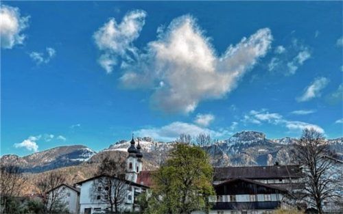 In einem lichten Moment zeichnet die Natur ein wunderbares Zeichen an den Himmel. Über der Kampenwand und der Aschauer Pfarrkirche formierte sich bei genauem Hinschauen ein kleines Herz aus einer Wolke.Foto H. Reiter