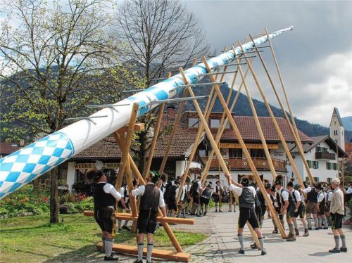 Nun steht wieder ein 30 Meter hoher und rund 2,8 Tonnen schwerer Maibaum am Nußdorfer Dorfanger. An seiner Spitze wacht ein frisch restaurierter Hahn, der an die Verleugnungsszene Petrus‘ erinnern soll, über das Heubergdorf. „Es gehören viel Kraft, Geschicklichkeit und Erfahrung dazu, um einen Maiba