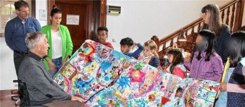 „Für ein so schönes Kunstwerk lade ich euch alle zum Eisessen ein“, begeisterte sich der Kieferer Bürgermeister Hajo Gruber, als eine Abordnung des Hortes der Kieferer Kinderburg ihr Hauptwerk (Foto) dem Gemeindeoberhaupt überreichte. Entstanden ist es beim Kunstprojekt „Raum der vielen Ideen“, init