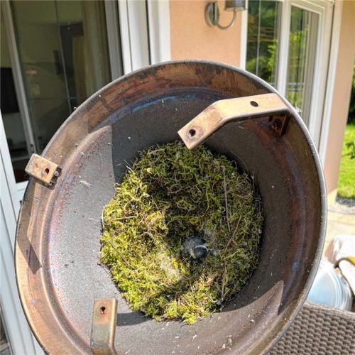 Leser-Reporter Tilmann Wanner aus Aschau entdeckte in seinem Heizpilz im Garten zufällig ein Kohlmeisennest. Die Vögel haben wohl im Frühling ein warmes Plätzchen für die Aufzucht ihrer Jungen gesucht. Foto Wanner
