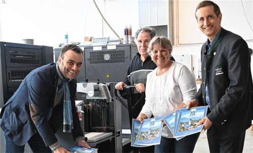 Die Freude bei Bürgermeister Alois Loferer (links) war groß, als er die Broschüre zum 50-jährigen Bestehen der Markterhebung von der Bad Endorfer Druckerei Wenninger überreicht bekam. Geschäftsführerin Amalie Wenninger und Geschäftsführer Gerhard Stöttner (Zweiter von links) waren stolz, den Auftrag