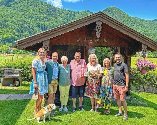 Schon zum 40. Mal verbringt Familie Bauer aus Recklinghausen gemeinsam mit den Kindern ihren Urlaub im Priental unterhalb von Schloss Hohenaschau im „Haus Monika“. Dieser besondere Jubiläumsaufenthalt war Anlass, dass Aschaus Tourismuschef Herbert Reiter dem Ehepaar Michael und Heidrun Bauer mit den