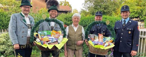 Altbürgermeister Benno Voggenauer (Mitte) feierte kürzlich seinen 80. Geburtstag (wir berichteten). In die Gratulantenschar reihten sich auch die Wildenwarter Ortsvereine ein. Unser Foto zeigt (von links) die stellvertretenden Vorsitzenden des Trachtenvereins „Die lustigen Wildenwarter“, Helmut Freu