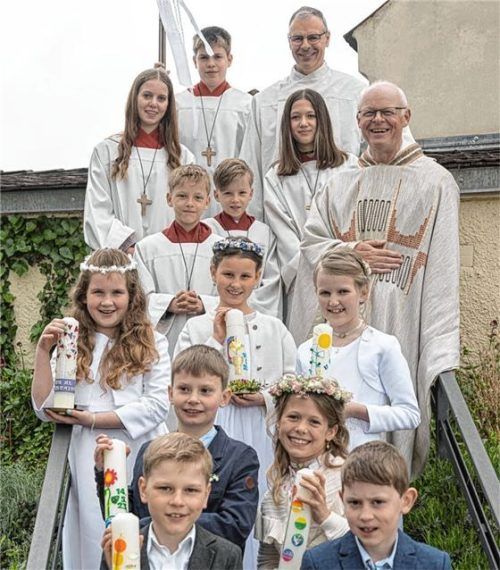 Vier Mädchen und drei Buben aus Schwabering haben sich zum Thema „Weites Herz – offene Augen“ auf ihre Erstkommunion vorbereitet. Begleitet wurden sie von den Kommunionmüttern, dem angehenden Diakon Michael Leberle und Pfarrer Seidenberger. Die Kinder hatten viel Freude bei den gemeinsamen Unternehm
