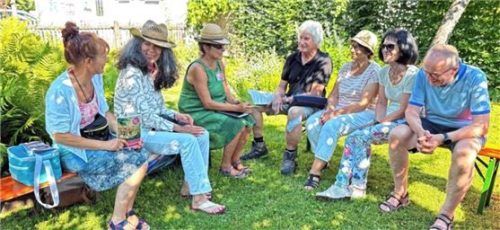 Auf einen „Kräutergartenratsch“ trafen sich Apotheker Dr. Günter Fleischmann aus Bad Aibling (Vierter von links) und Kräuterfrau Martina Glatt (Dritte von links) mit Interessierten im Garten des Müllner-Peter-Museums in Sachrang. Das Museum, mit Sonderausstellung zur Heilkunde, ist freitags bis sonn