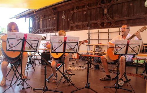 Der Leiter der Musikinitiative Pittenhart, Klaus Stöcklhuber (rechts), stellte ein buntes Programm für einen Nachmittag im Garten des Hilgerhofs zusammen, um möglichst vielen seiner Schüler die Möglichkeit für einen Bühnenauftritt zu geben. 14 Gruppen unterhielten ihr Publikum mit Musikstücken, Lied