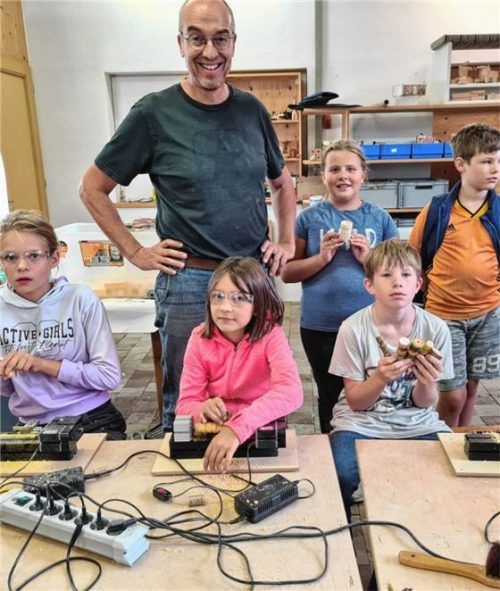 Unter der fachkundigen Anleitung von Pit Fürleger, einem erfahrenen Schreiner und Pädagogen, lernten kleine Handwerker beim Reischenharter Ferienprogramm die ersten Schritte des Drechselns kennen. An kindersicheren Modellbaumaschinen durften Teilnehmer ab sieben Jahren handgerechte Drechselmesser be