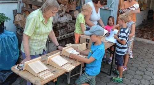 Insekten werden immer weniger, das schränkt das Nahrungsangebot auch für Fledermäuse ein. Um zu helfen, hat der Bund Naturschutz, Ortsgruppe Prutting-Söchtenau, mit Helfern und acht Kindern Nisthilfen für Feldermäuse gebaut.Foto Niessen