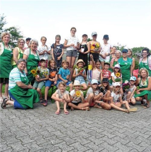 Der Gartenbauverein Halfing bot 20 Kindern ein Ferienprogramm bei Familie Schied an. Dabei gab es verschiedene Stationen. Es wurde ein Blumengesteck gestaltet, es gab eine Sonne mit „Baststrahlen“, ein Windspiel und einen Gartenstecker zu basteln. Der Gartenstecker war ein Herz mit vielen bunten Gla
