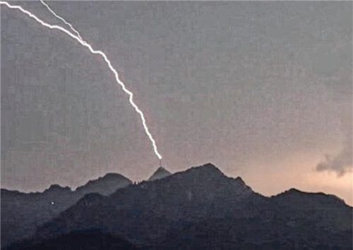 Bei dem Gewitter am späten Freitagnachmittag gelang unserer Leser-Reporterin Marlies Loferer aus Neubeuern diese Aufnahme von Neubeuern aus. Ein Blitz traf dabei das Gipfelkreuz am Wendelstein.Foto Loferer