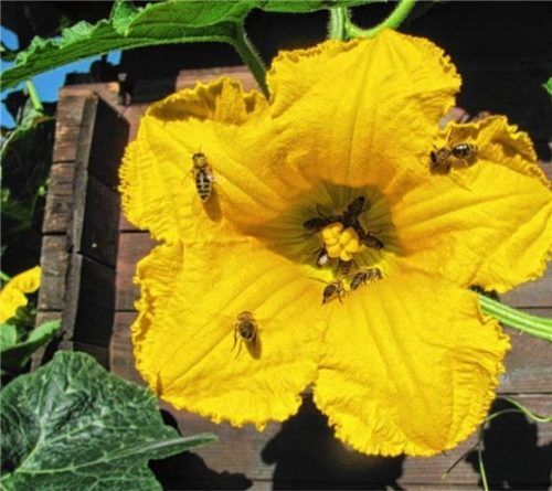 Der Leser-Reporter Ernest Krapfl aus Pfraundorf hat die knallgelbe Blüte eines Butternusskürbisses fotografiert. Wie man sieht, wird die Blüte des Kürbisses von den Bienen regelrecht überfallen. Nach zwei Tagen war die Blüte schon wieder geschlossen. Eine Woche danach bildete sich ein kleiner Kürbis