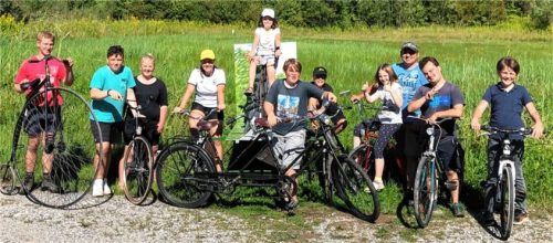 Acht Kinder nahmen am Ferienprogramm des Radlervereins Söchtenau teil. Mitglieder des Vereins, der sich um den Erhalt historischer Fahrräder kümmert, zeigten ihnen, wie ein Radlreifen fachkundig geflickt und aufgepumpt wird. Die Teilnehmer durften außerdem auf historischen Gefährten, Tandems und Kin