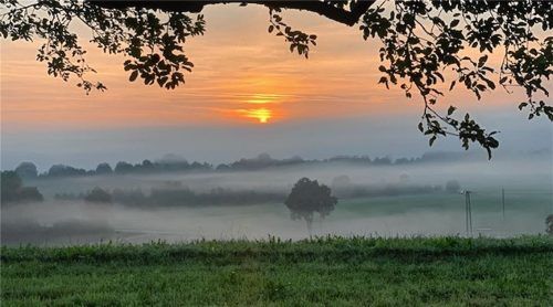 Nebel liegt über den Wiesen. Die Luft ist feucht und dampfig. Bei einem Morgenspaziergang von Friesing bei Hochstätt erhaschten unsere beiden Leser-Reporter Irmi und Christian Hörfurtner aus Schechen einen Blick in den Herbst. Das Bild zeigt den Sonnenaufgang über dem Inn in Richtung Vogtareuth. Fot