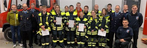 Zwölf Teilnehmer haben den Lehrgang für Atemschutzgeräteträger mit Erfolg abgeschlossen. Der Lehrgang im Feuerwehrhaus Nußdorf umfasste insgesamt 27 Ausbildungsstunden, die sich auf sieben Abende und einen Samstag aufteilten. Zuständig für die Atemschutzausbildung war Kreisbrandmeister Christoph Mei