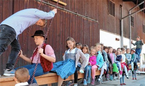 Das Wetter hätte etwas besser sein können, aber beim Kirtahutschn ist man schließlich unter Dach. Der Trachtenverein Niederaschau lud in Aschau zum Hutschn ein. Die Kleinen ließen es noch ein bisschen vorsichtig angehen, die Großen flogen mit der Kirtahutsch „direkt in den Himmel“. Die Gaudi war rie