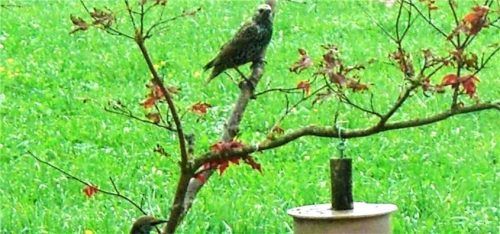 An der Futterversorgung streiten sich die Stare um den besten Platz. Lange sind sie nicht mehr hier zu sehen, denn Stare sind Zugvögel und überwintern im Süden.Foto Neumeier