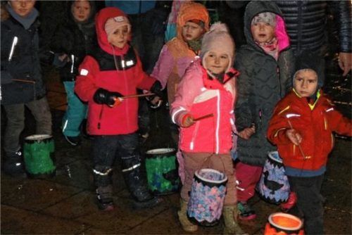 Zum Martinszug trafen sich bei Nieselwetter und Eisregen die Kinder der beiden Aschauer Kindergärten „Spatzennest“ und „Sankt Marien“ mit ihren selbst gebastelten Laternen. Ein Martinsweckerl zum Teilen für zu Hause war der Lohn für die Kinder, die begeistert am Umzug mitwirkten.Foto Rehberg
