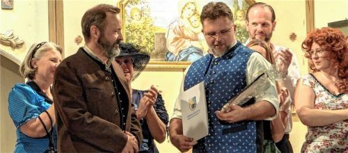 Wie es seit Jahren Usus ist, nutzten die Verantwortlichen der Heimatbühne Kiefersfelden die Premiere ihres neuen Theaterstücks zur Ehrung langjähriger und verdienter Mitglieder. Vorsitzender Florian Kerschbaumer rief dazu Robert Böhm, der gerade noch in dem neuen Stück „Wallfahrt und Weihwasser“ als