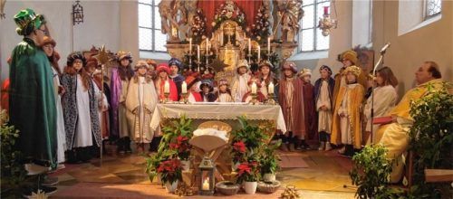 Die Aussendung von 29 Sternsingern in der Pfarrei St. Vitus Hochstätt stellte Pfarrer Herbert Aneder in den Mittelpunkt des feierlichen Gottesdienstes am Dreikönigstag. In königlicher Gewandung, eingekleidet von Rita Winkler und vorbereitet vom Familien-Gottesdienst-Team, überbrachten sie der ganzen