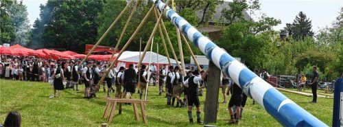Dank Muskelkraft steht der neue Maibaum in Stephanskirchen