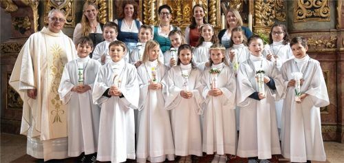 Bei herrlichstem Wetter durften die Kommunionkinder aus Halfing mit ihren Paten und Familien, von der Halfinger Blasmusik begleitet, in die Kirche Mariä Himmelfahrt einziehen. Feierlich wurden sie dort von der Pfarrgemeinde und der Youbilate-Band begrüßt. Nach dem Empfang der heiligen Erstkommunion