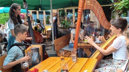 Petrus hatte ein Einsehen und bescherte dem Fachbereich Volksmusik der Musikschule Rosenheim das optimale Wetter für ihren „musikalischen Almspaziergang“. Die Schülerinnen und Schüler wanderten zusammen mit ihren Lehrkräften und dem Publikum zum Berggasthof Schweinsteig in Brannenburg. Dort wurde fr