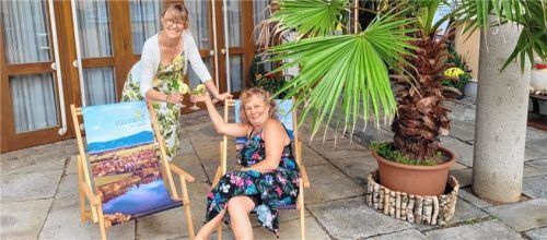 Karibisches Flair mitten Eggstätt – dass das problemlos geht, zeigt die Tourist-Info mit ihren neuen Liegestühlen. Die beiden bequemen Sitzgelegenheiten sind regelrechte Hingucker, auch dank des einmaligen Luftbilds der Hartseegemeinde aus der Linse von Fotografin Pia Steen. Damit auch „drumherum“ a