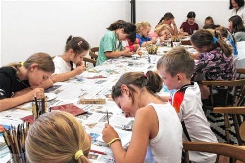 55 Buben und Mädchen aus Aschau, Frasdorf und Rohrdorf kamen beim Ferienprogramm der drei Gemeinden zum Porzellanmalen mit Brigitte Kalckbrenner aus Sachrang. Sie durften sich ihr Porzellan aus dem reichhaltigen Fundus aussuchen. Zwischendurch gibt es ein paar Gummibärchen zum Verschnaufen. Seit 20