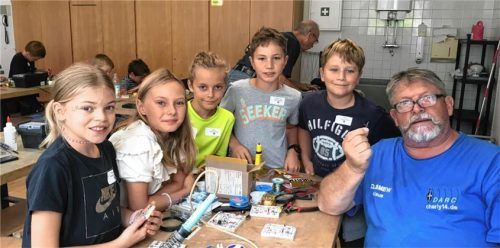 Im Rahmen des Riederinger Ferienprogramms und dem Veranstalter Deutscher Amateur-Radio-Club Ortsverband Rosenheim bauten elf Kinder zusammen mit mit drei erfahrenen Elektronikern einen Blumentopfwächter und eine Schubladen-Alarmanlage. Mit großem Eifer wurden Schaltpläne studiert und filigrane Baute