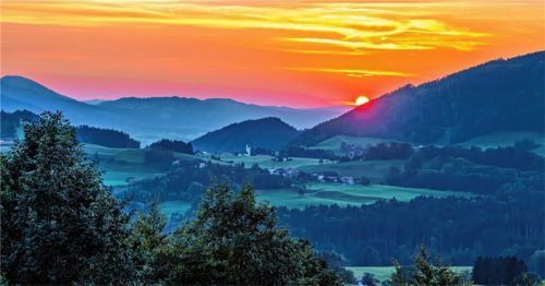 Das Hochplateau Samerberg im Rosenheimer Land mit seinen über 70 Ortschaften und Weilern bietet viele Plätze zum Verweilen und Innehalten. Ein ganz besonderer Moment war in diesen Sommertagen der Ort Roßholzen zur Zeit des Sonnenuntergangs. Die Landschaft präsentierte sich wie gemalt.