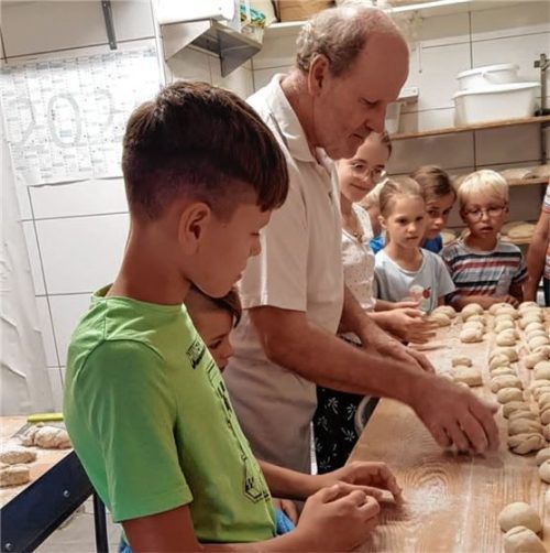 Der Arbeitskreis Dorfgemeinschaft und Soziales in Prutting hat zusammen mit Bäcker Martin Schmidmaier im Rahmen des Ferienprogramms „Brotbacken wie früher im Holzofen“angeboten. Acht Kinder durften mit Begeisterung ihr eigenes Brot, Semmeln und Brezen backen und anschließend auch mit nach Hause nehm