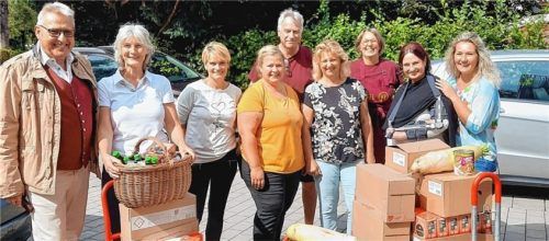 Die Frauenbewegung Eggstätt hat mit ihren Kräuterbüscheln 775 Euro erlöst. Die Vorstandschaft entschied sich, mit dem Geld Lebensmittel einzukaufen und sie der Chiemseer Tafel zu spenden. Viele weitere Eggstätter Bürger haben sich gemeldet und weitere Lebensmittel zur Verfügung gestellt. Im Bild (vo