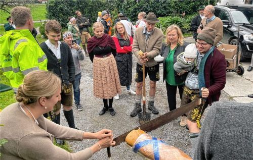 Wenn mitten am Nachmittag der Schneider Schorsch (Georg Siegmund) und seine Tochter Magdalena die Pferde einspannen und mit der „Blechchaos Musi“ durch den Ort ziehen, dann muss schon ein triftiger Grund vorliegen. In Pfraundorf war es dieser Tage so, weil ein prächtiger, acht Meter langer Weisertwe