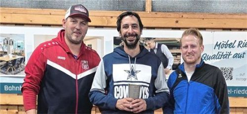 Die Abteilung Eisstock des FC Halfing organisierte an zwei Abenden das Zielschießen auf den eigenen Stockbahnen. Sportleiter Andi Hartl durfte zwei Damen und acht Herren begrüßen. Der erste Platz ging an Peter König junior (Mitte). Er schaffte sensationelle 134 Punkte, gefolgt von Marcus Maier (link