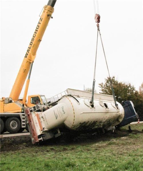 Silozug kippt um: Spektakuläre Bergung mit „großem Staubsauger“ bei Prutting