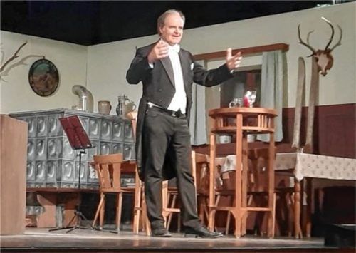 Passend zu den Theaterkulissen im Saal des Gasthauses Antretter in Stephanskirchen entführte Andreas Kern vom Tegernseer Volkstheater mit seinen Liedern und Geschichten in ein Wiener „Beisl“. Schelmisch, rührend, lustig, besinnlich, traurig, altersweise und authentisch erklangen Lieder von Nestroy,