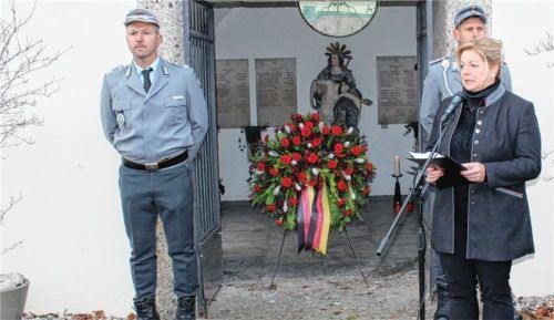 In ihrer Ansprache zum Volkstrauertag in Nußdorf erinnerte Bürgermeisterin Susanne Grandauer an zwei bedeutende historische Ereignisse: den Ausbruch des Ersten Weltkriegs vor 110 Jahren und an die entscheidenden Wenden im Zweiten Weltkrieg vor 80 Jahren. Sie betonte, dass die Mahnung „Nie wieder“ he
